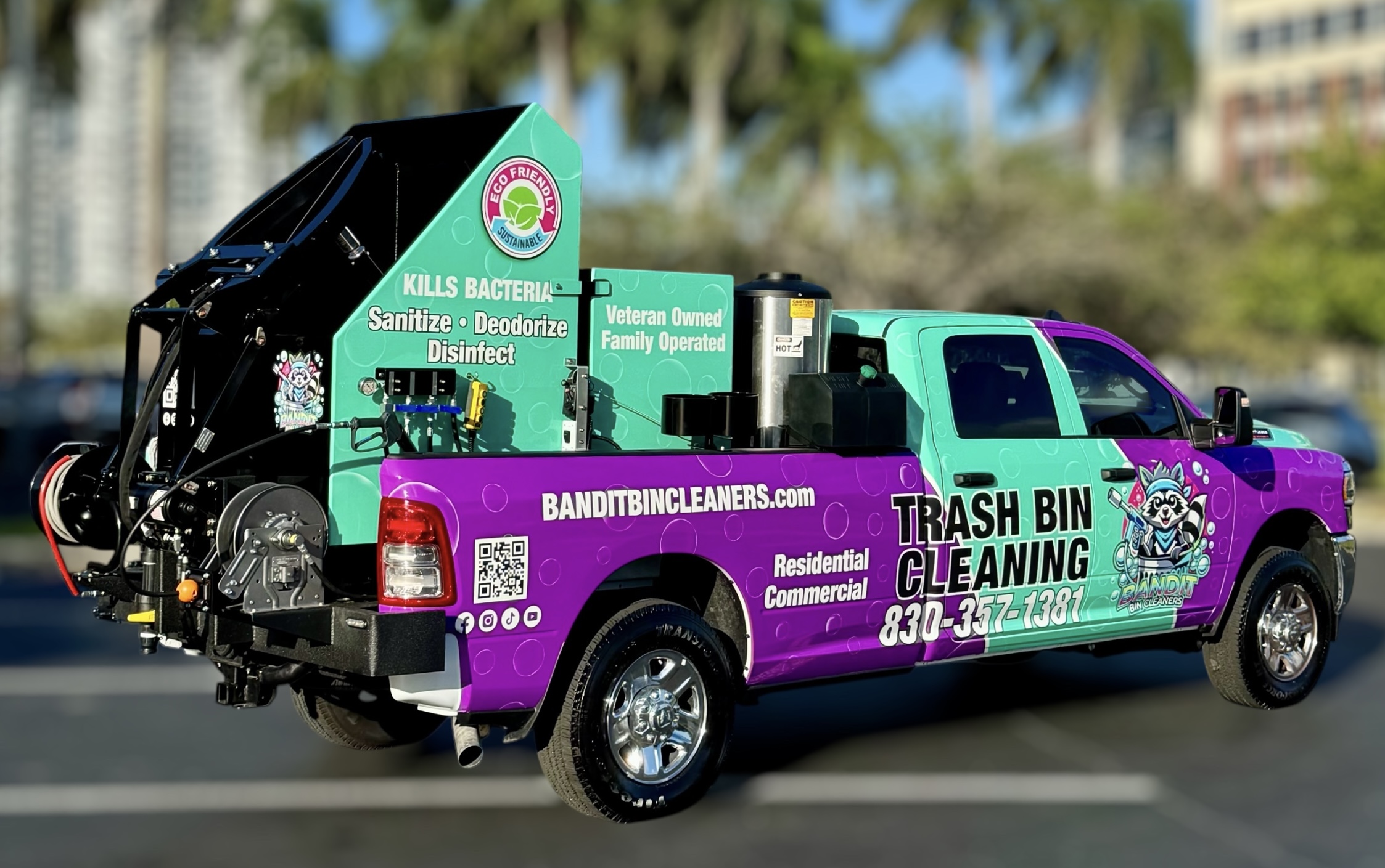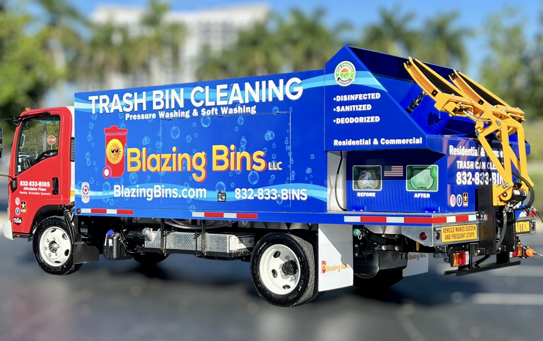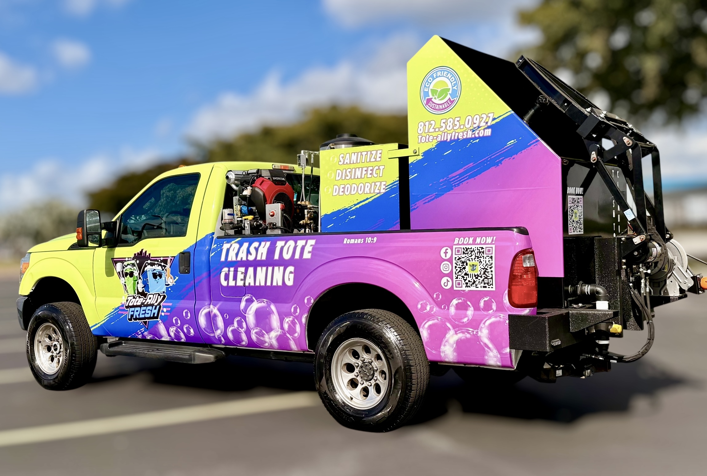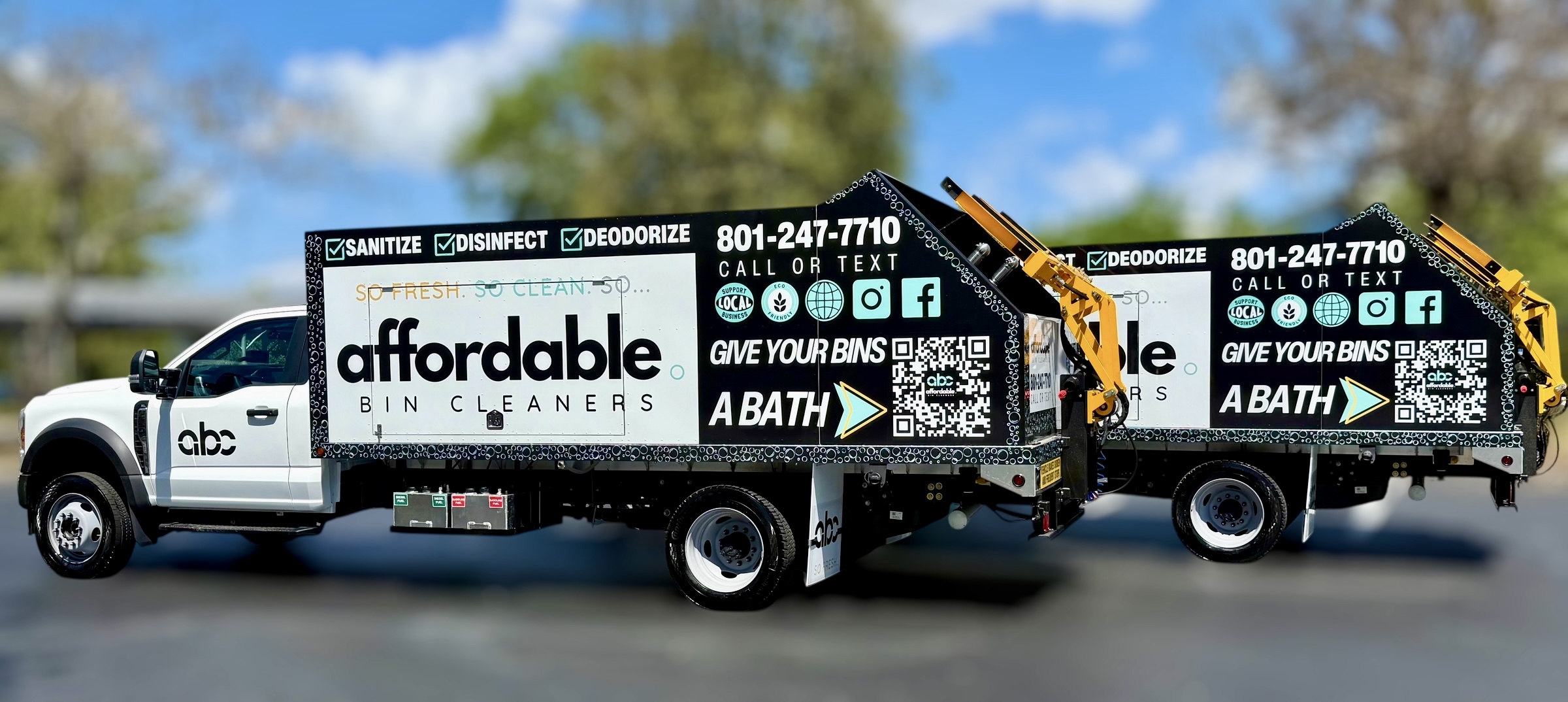Explore our gallery to see the custom wraps, builds, and creative branding that bring each Sparkling Bins system to life. From eye-catching flatbeds to fully branded trailers, our equipment is as visually impactful as it is powerful. Whether you’re looking for inspiration or imagining your own setup, you’ll see just how far your business vision can go.